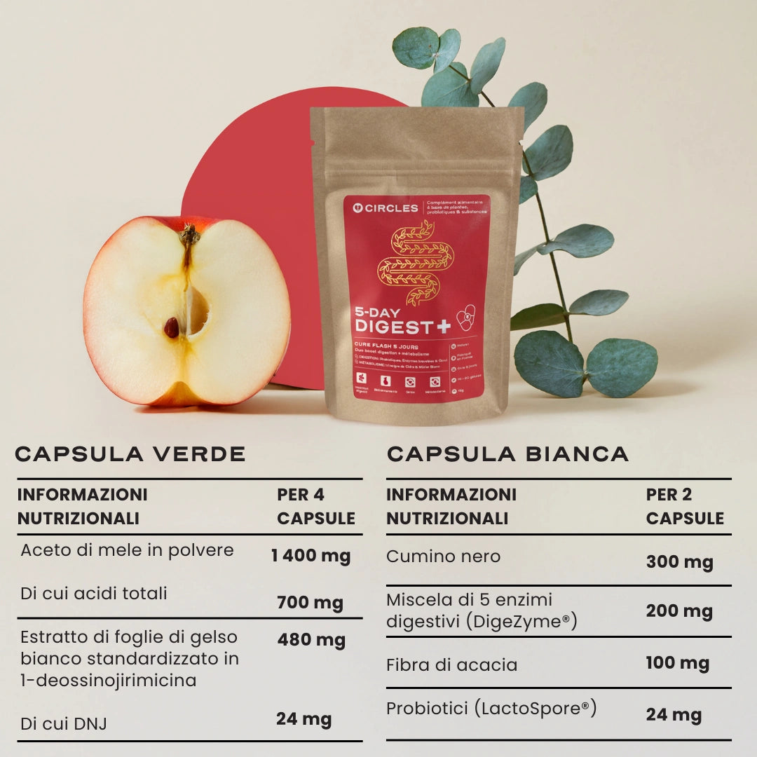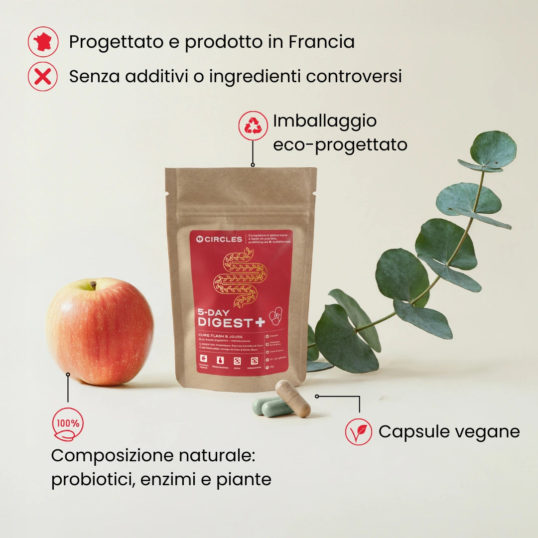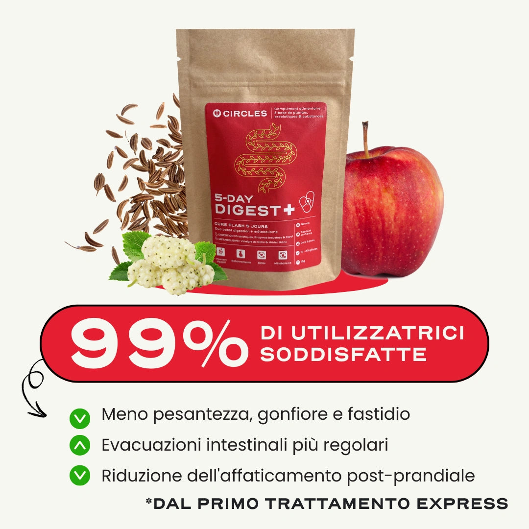 In 5 giorni, il comfort digestivo alterato dagli eccessi risulta visibilmente migliorato.