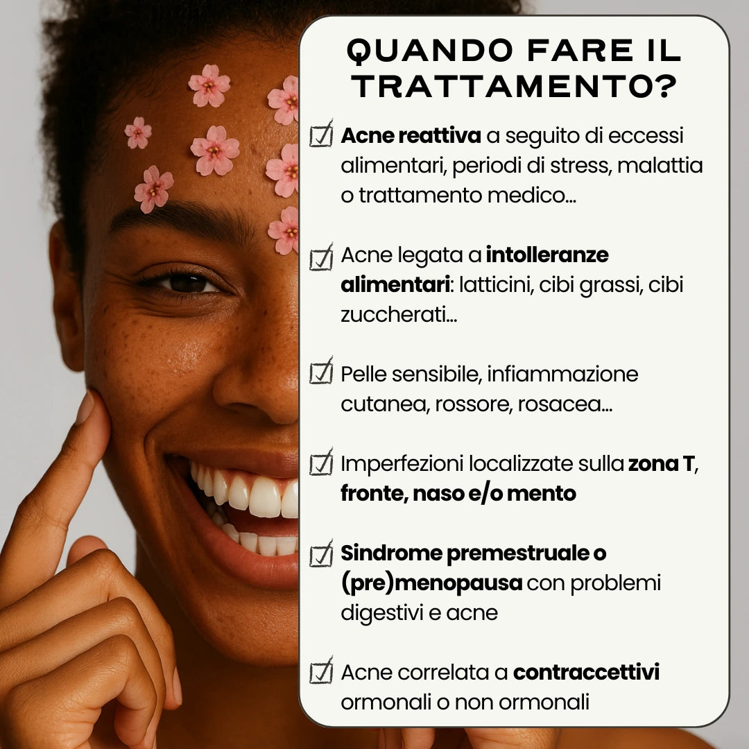 ⌛️ In caso di acne legata all'arrivo della menopausa o premenopausa, spesso accompagnata da problemi digestivi (stitichezza, gonfiore, pancia gonfia, ecc.)