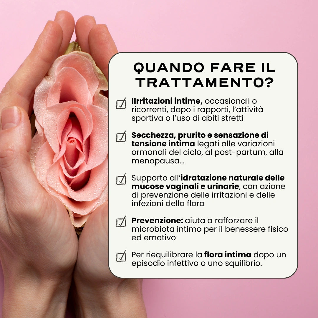 🌸 In accompagnamento, durante o dopo uno squilibrio (infezione urinaria, candida...), per sostenere il riequilibrio della flora intima.