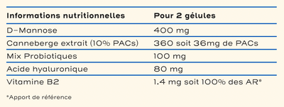 Les 6 souches de probiotiques agissent en synergie contre les différentes facteurs de déséquilibres de la flore intime, contribuent à naturellement renforcer le microbiote pour prévenir les déséquilibres. L'extrait de cranberry, le D-Mannose et l'acide hyaluronique complètent l'action des probiotiques en soutenant la santé des muqueuses. L'équilibre de la flore vaginale et urinaire est soutenu, le confort intime amélioré.